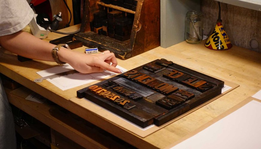 在凸版工坊,排版印刷展現鉛字壓紙的重量與觸感。壓痕不只是美感,更是一種慢工藝教育:提醒創作需時間、耐心與材質敬意,而非僅追求速度與量產。